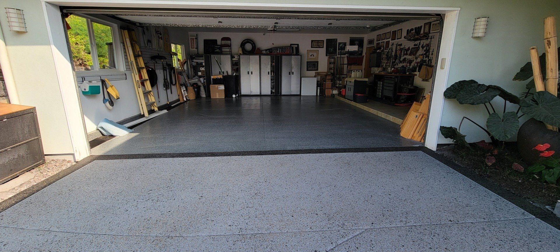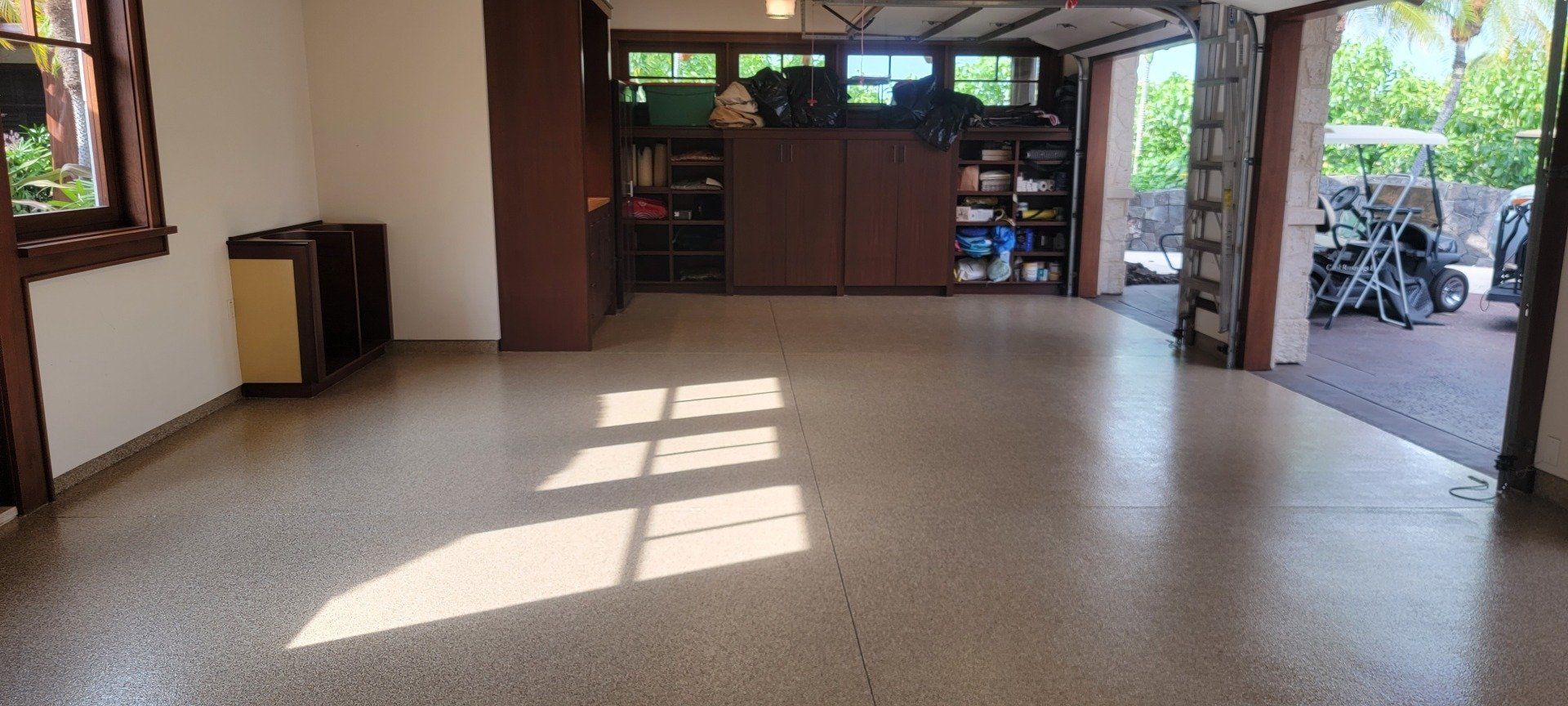 Give yourself a showroom quality garage floor with CTi's F1 Fast Floor system. We offer a multitude of colors and custom chip combinations to perfectly compliment any garage floor. Our industrial grade sealers are chemical resistant and easy to clean. Call Concrete Technology of Hawaii today at 808-324-7600 for a Free Estimate.